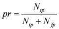 | sensitivity | | Ntp: number of true positives Nfn: number of false negatives Nfp: number of false positives | |
