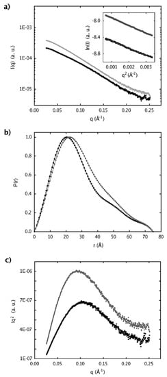 - Svergun, D.; Petoukhov, M.; Koch, M. Determination of domain structure of proteins from x-ray solution scattering. Biophys. J. 2001, 80, 2946–2953. [Google Scholar] [CrossRef]