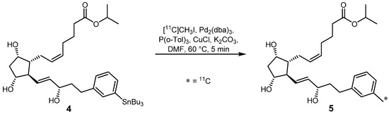 Based on these investigations, Björkman et al. presented the preparation of stannylated prostaglandin analogue 4 which was used as precursor for a 11C-labeling in an improved Stille reaction (Scheme 6).
