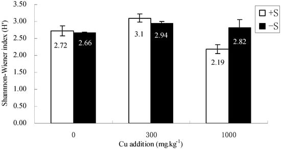 Diversity of microbial communities is considered to be an important index of the soil quality. It is confirmed that microorganisms may play an important role on heavy metal fate in soil [,]. Microbes in paddy soil may be involved in sulfur transformation and then contribute to the mobility of heavy metals. Hence, it is necessary to study the role of sulfur on the microbial community composition in heavy metals contaminated soil as well as the microbial impact on the availability of heavy metals. The purpose of this study was: (1) to evaluate the role of sulfur on the availability of Cu and bacterial community composition in rice rhizosphere; (2) to investigate the effect of altered soil microbial diversity on the availability of Cu.