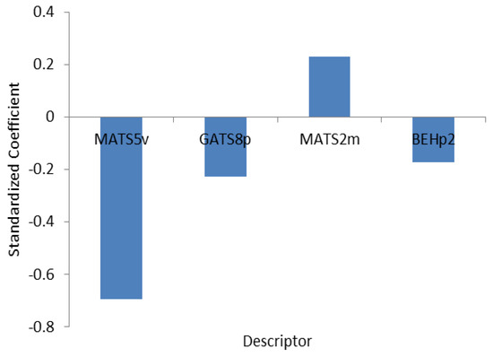 Standardized coefficients versus descriptors in MLR model.
