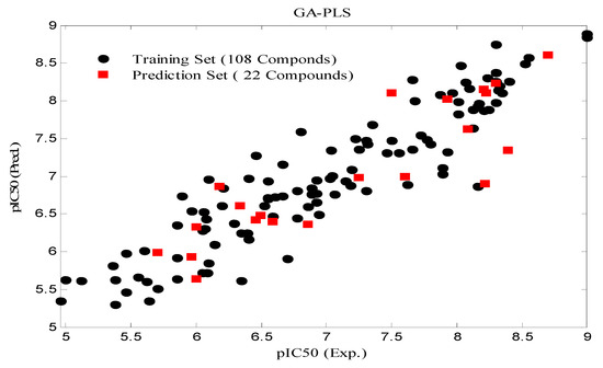 The predictive ability of QSAR/QSPR models is affected by two factors: the descriptors, which must carry enough of the molecular structure information for the interpretation of the activity/property; and the employed modeling method. However, with too many descriptors, there is the possibility of over fitting of the statistical methods. Thus, in QSAR/QSPR studies the identification and selection of descriptors which provide maximum information in activity variations and have minimum co-linearity is important. On the other hand, the use of PLS usually results in well fitted stable models which have high predictive ability, but the estimation is not always very accurate and stable over the time. Therefore, a genetic algorithm (GA) [34] with a PLS regression improves the model accuracy in the selection of proper descriptors.