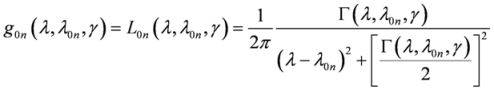 and the parameter γ discussed just below (E0n denotes the excitation energy). In practice, in our calculations the lineshape function used is either a Lorentzian: