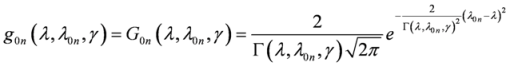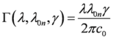 for a Gaussian again expressed as a function of the ω (both functions are therefore normalized to unity on the ω axis). With the definition of Eqs. (3) and (4) each lineshape function is not normalized to unity in the wavelength domain, and it is not symmetric with respect to the λ =λ0n coordinate, where the function has its maximum. Quite often one approximates