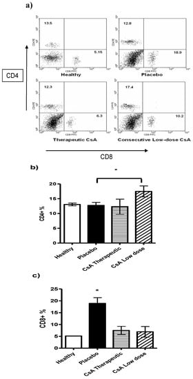 2.4. Minimal Doses of CsA Increase the CD4+ T Cell Subpopulation