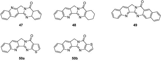 - Cagir, A.; Jones, S.H.; Eisenhauer, B.M.; Gao, R.; Hecht, S.M. Synthesis and Biochemical Properties of E-Ring Modified Luotonin A Derivatives. Bioorg. Med. Chem. Lett. 2004, 12, 2051–2054. [Google Scholar]