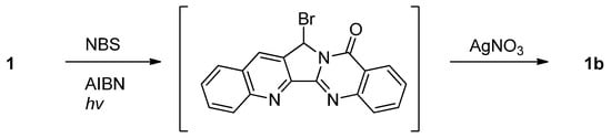 Luotonin A underwent slow conversion to luotonin B when a solution of the compound in chloroform was exposed to sunlight for two weeks [3]. Luotonin A can also be converted to luotonin B in two steps by AIBN-catalyzed bromination at the benzylic position followed by Ag(I)-mediated hydroxylation [27,28] (Scheme 18).