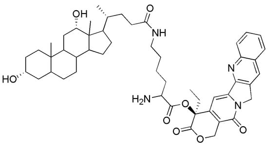 - Li, Q.Y.; Gao, Y.; Qiu, W.; Zu, Y.G.; Su, L. synthesis and anti-tumor activity of novel camptothecin-bile acid analogues. Lett. Drug Discov. 2011, 8, 698–703. [Google Scholar] [CrossRef]