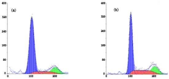 Briefly, SMMC-7721 cells were seeded in a 6-well plate for 24 h and exposed to B2 for 48 h. Then the cells were harvested and washed with PBS. The cell pellets were re-suspended in PBS (800 µL) and stained with CyStain (200 µL) for 10 min in the dark [28]. The cell cycle was determined by flow cytometry (Partec GmbH, Germany). Apoptosis assays were performed using an annexin V-FITC apoptosis detection kit following the manufacturer’s instructions. After exposure to B2 for 48 h, the cells were collected and washed with PBS twice, gently re-suspended in annexin V-FITC binding buffer (195 µL) and incubated with annexin V-FITC (5 µL) for 10 min at room temperature in the dark. The cells were then centrifuged at 3,000 rpm for 5 min, gently re-suspended in annexin V-FITC binding buffer (190 µL) and PI (10 µL) was added, followed by immediate analysis by flow cytometry [29,30].