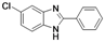 5-Chloro-2-phenyl-1H-benzo[d]imidazole (2c). White solid; m.p. 209–211 °C; yield: 66%. 1H-NMR: δ 13.13 (br s, 0.18H), 8.20–8.18 (d, 2H, J = 7.2 Hz), 7.74–7.51 (m, 5H), 7.26–7.24 (d, 1H, J = 8.0 Hz). 13C-NMR: δ 152.55, 144.63 (142.48), 135.52 (133.60), 130.15, 129.56, 128.94, 126.50, 122.53 (122.08), 120.02, 118.18, 112.53 (110.92). HRMS-ESI (m/z): [M+Na]+ calcd. for C13H9ClN2Na 251.0352; found 251.0356.