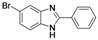5-Bromo-2-phenyl-1H-benzo[d]imidazole (2d). White solid; m.p. 202–203 °C; yield: 54%. 1H-NMR: δ 13.09 (br s, 0.26H), 8.18–8.16 (d, 2H, J = 8.0 Hz), 7.87–7.50 (m, 5H), 7.37–7.33 (m, 1H). 13C-NMR: δ 145.20, 142.82, 130.27, 129.54, 129.01, 126.57, 125.21, 124.70, 114.71, 113.87, 113.07. HRMS-ESI (m/z): [M+Na]+ calcd. for C13H9BrN2Na 294.9847; found 294.9849.