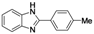 2-p-Tolyl-1H-benzo[d]imidazole (2i). White solid; m.p. 276–278 °C; yield: 60%. 1H-NMR: δ 12.83 (br s, 0.15H), 8.09–8.07 (d, 2H, J = 7.6 Hz), 7.65–7.53 (m, 2H), 7.37–7.35 (d, 2H, J = 8.0 Hz), 7.20 (m, 2H), 2.39 (s, 3H). 13C-NMR: δ 151.17, 143.71, 139.49, 134.74, 129.42, 127.31, 126.30, 122.23, 121.50, 118.62, 111.04, 20.87. HRMS-ESI (m/z): [M+Na]+ calcd. for C14H12N2Na 231.0898; found 231.0895.