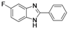 5-Fluoro-2-phenyl-1H-benzo[d]imidazole (2b). White solid; m.p. 243–244 °C; yield: 77%. 1H-NMR: δ 13.06 (br s, 0.14H), 8.18–8.16 (d, 2H, J = 8.0 Hz), 7.69–7.31 (m, 5H), 7.12–7.04 (m, 1H). 13C-NMR: δ 160.15, 153.33, 140.91, 130.60, 130.28, 126.95, 120.19, 111.19, 110.44, 104.90, 98.28. HRMS-ESI (m/z): [M+Na]+ calcd. for C13H9FN2Na 235.0647; found 235.0649.