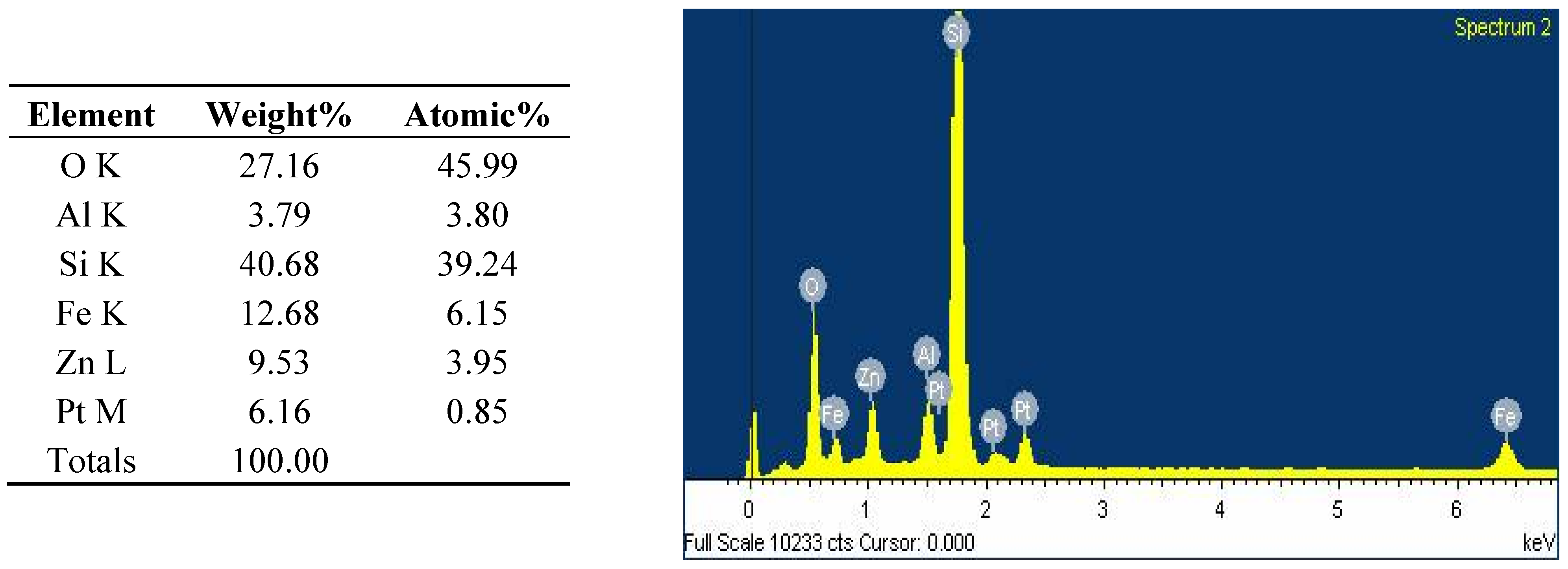 The surface morphology and size of the AlZnFe2O4 nanoparticles were studied by scanning electron microscope (SEM, JSM-7401F JEOL Ltd., Akishima, Japan) as shown in Figure 1. The chemical composition of the nanoparticles was determined by Energy Dispersive X-ray analysis using Inca-FET-3, Oxford Instruments (UK) Ltd. (Figure 2). The dried SHNC samples were characterized by FTIR spectroscopy using an equipment Tensor-27, Bruker Optics (Ettlingen, Germany) in the scanning range 4000 to 500 cm−1.