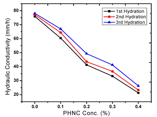 2.5. Effect of PHNC on Hydraulic Conductivity