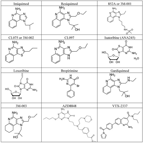 - Agrawal, S.; Kandimalla, E.R. Synthetic agonists of Toll-like receptors 7, 8 and 9. Biochem. Soc. Trans. 2007, 35, 1461–1467. [Google Scholar] [CrossRef]