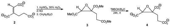 Treatment of trans-homoaconitate with H2WO4/H2O2, as shown in Scheme 3, afforded corresponding trans-epoxide in high yield.