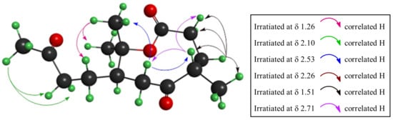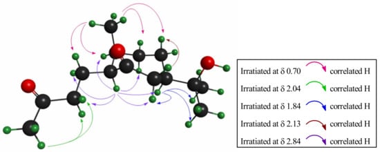 Selected nOe interactions for sesquiterpene 2.