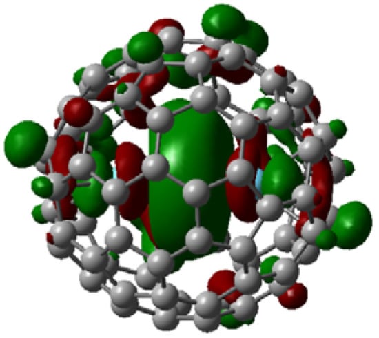 The point is that the extra stabilization factor that changes completely the order in the series of the endohedral complexes is the formation of bonds, the stronger the bond the stabler species. It is important to point out that the LUMO of almost all the endohedral complexes is similar and that it is possible to observe a strong anti-bonding interaction at the center of the cages and in the middle of the distance between both lanthanum particles (see Figure 9), Popov and his coworkers have shown a similar interaction [41]. This is a very interesting observation for two reasons. Firstly it appears that this function arises owing to the repulsion between both ions forcing them to get closer to the inner wall, but secondly there is a very strong anti-bonding lower orbital in all cases, which should thus act as a bridge inducing a kind of back-bond effect.