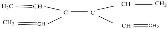 Firstly tetravinylethylene is a source of secondary carbon atoms that do not contain hydrogen [30,31]. Its formula is presented in the next scheme where it is possible to observe the two central atoms of carbon that have a double bond between them, even though they are joined to four vinyl groups. Thus these central atoms present a similar pattern to that found on the lattice of a fullerene molecule.