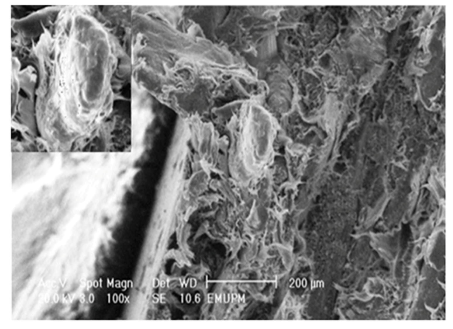 2.6. Morphological Study of PBAT/EFB Biocomposite at 40% Fiber Loading