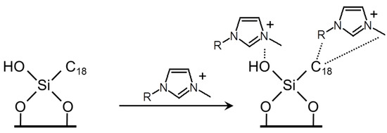 - Van Meter, D.; Oliver, N.; Carle, A.; Dehm, S.; Ridgway, T.; Stalcup, A. Characterization of surface-confined ionic liquid stationary phases: Impact of cation and anion identity on retention. Anal.Bioanal. Chem. 2009, 393, 283–294. [Google Scholar]