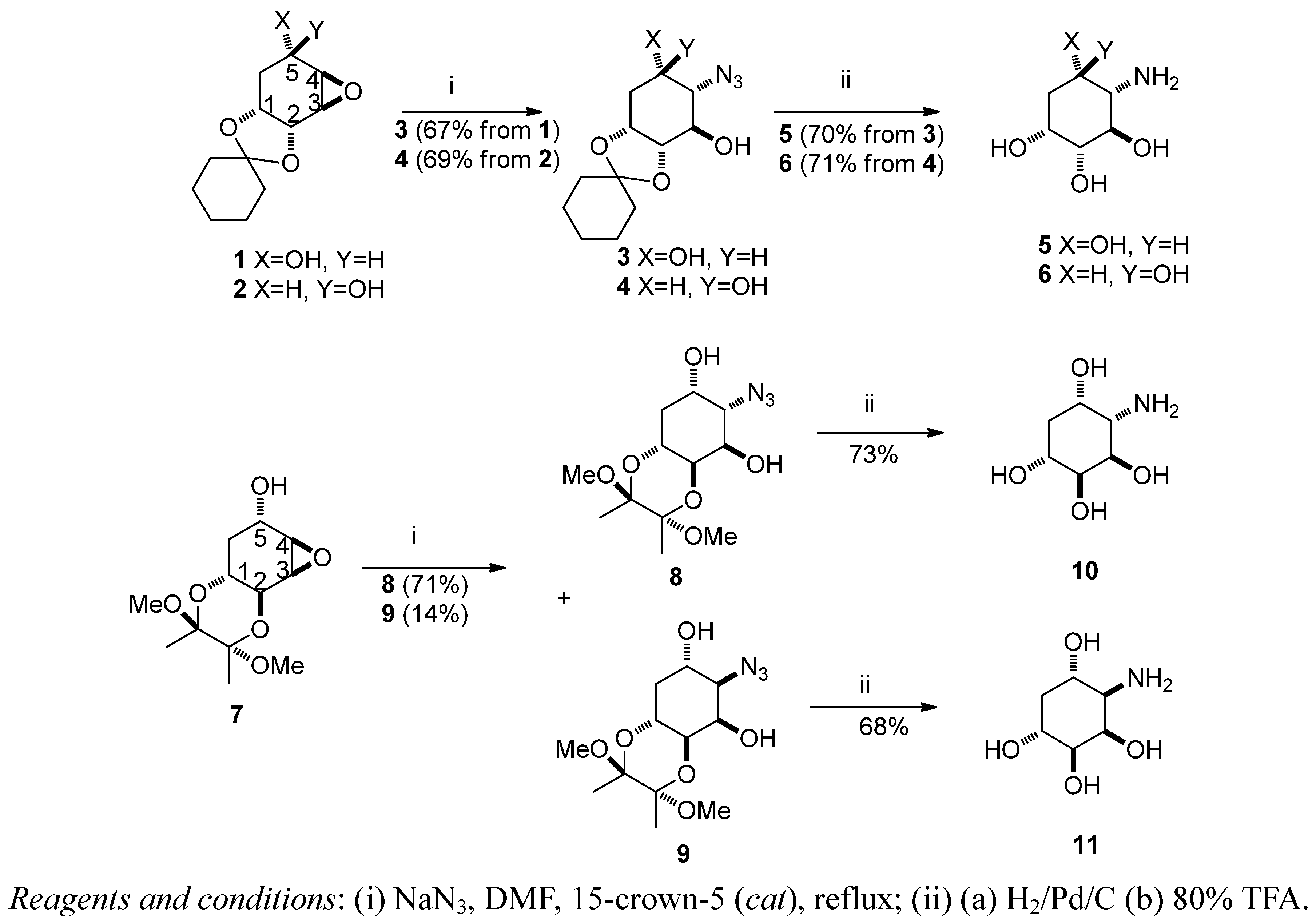 Synthesis of aminocyclitols 5, 6, 10 and 11.