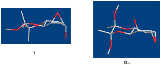 Three-dimensional representations of structures 7 and 12a.