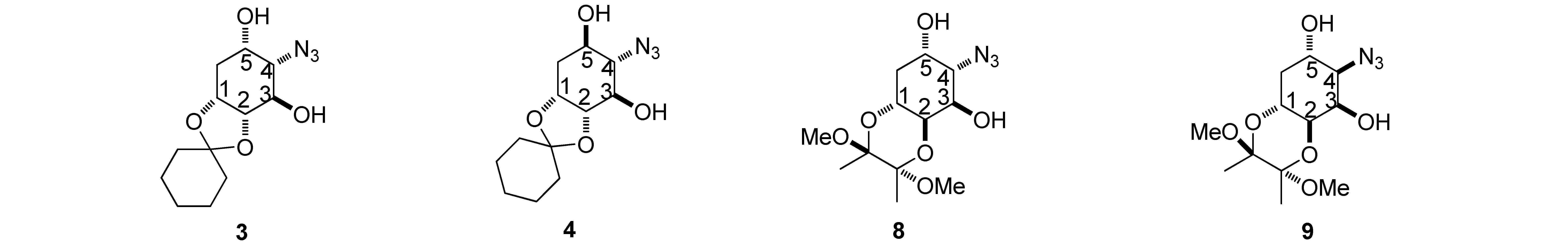3.4.1. (1R,2R,3R,4S,5S)-4-Azido-1,2-O-cyclohexylidene-cyclohexane-1,2,3,5-tetraol (3)