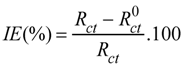 Following this reasoning, we can conclude the Co (II)(T(o-NH2)PP) forms the most corrosion-resistant layer. The inhibition efficiency can be subsequently calculated from the impedance parameters using the following relationship [52]: