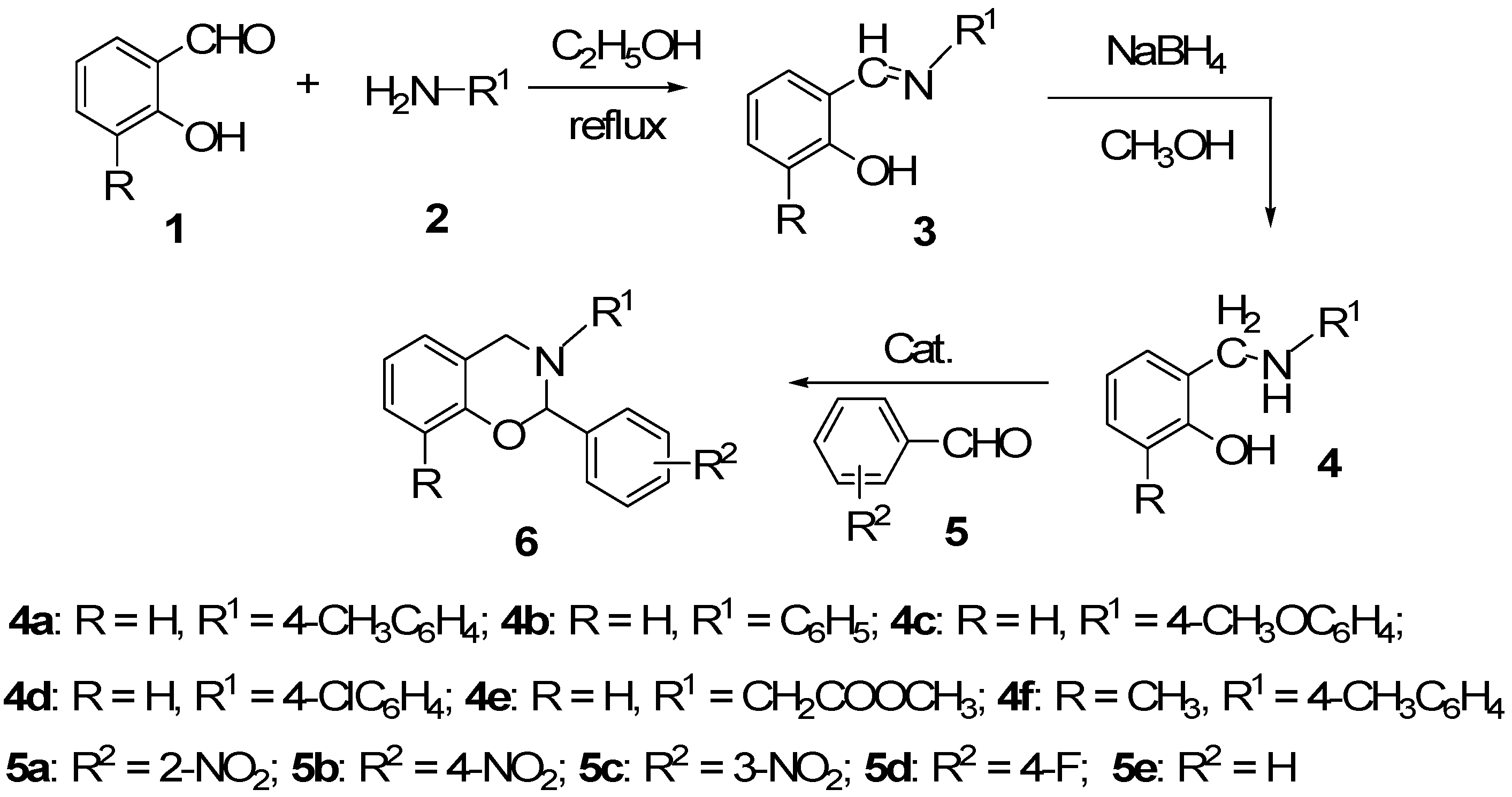 Synthesis of 2,3-disubstituted 3,4-dihydro-2H-1,3-benzoxazines 6.