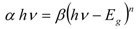 Several models are used to determine the optical properties of amorphous semiconductors. The most widespread is the Tauc model [2] which allows us to derive the band gap energy Eg from E(ε)1/2 as function of the incident energy E. The Tauc optical gap associated with the thin films is determined through an extrapolation of the linear trend observed in the spectral dependence of (αhν)1/2 over a limited range of photon energies hν [19]: the Tauc optical gap is defined as occurring at the intercept of this linear extrapolation with the abscissa axis [1]. The absorption coefficient α near the band edge in many amorphous semiconductors shows an exponential dependence upon photon energy usually obeying the empirical relation [20]: