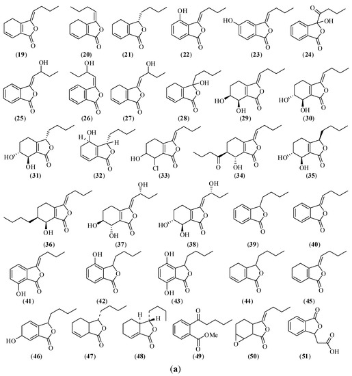 Phthalides exhibit an equally broad spectrum of bioactivity, including modulation of the central nervous system and cardiac function, protection against brain ischemia, smooth muscle relaxation, inhibition of smooth muscle cell proliferation, anti-platelet aggregation, anti-angina activity, antibacterial, antifungal, antiviral and phytotoxic activity [132,133,134].