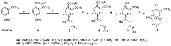 - Plourde, G.L.; Fisher, B.B. Synthesis of 6-methoxy-1-oxaspiro[4,5]-6,9-diene-8-one. Molecules 2002, 7, 315–319. [Google Scholar] [CrossRef]