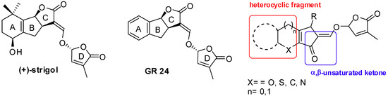 - Bhattacharya, C.; Bonfante, P.; Deagostino, A.; Kapulnik, Y.; Larini, P.; Occhiato, E.G.; Prandi, C.; Venturello, P. A new class of conjugated strigolactone analogues with fluorescent properties: Synthesis and biological activity. Org. Biomol. Chem. 2009, 7, 3413–3420. [Google Scholar] [CrossRef] [PubMed]