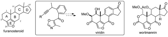 - Sessions, E.H.; Jacobi, P.A. Studies on the Synthesis of Furanosteroids. I. Viridin Models. Org. Lett. 2006, 8, 4125–4128. [Google Scholar] [CrossRef] [PubMed]