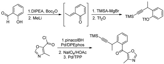 - Echavarren, A.M.; Stille, J.K. Palladium-catalyzed carbonylative coupling of aryl triflates with organostannanes. J. Am. Chem. Soc. 1988, 110, 1557–1565. [Google Scholar] [CrossRef]