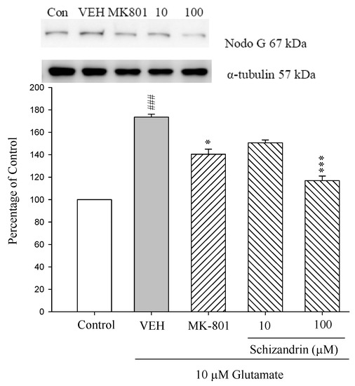 2.3. Western Blot Analysis of the Effects of Schizandrin on Glu-Induced Protein Level Changes of Nodo G and AIF in Rat Cortical Cell Cultures