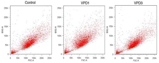 Representative dot plots showing size and granularity of mHippoE-18 cells after 24 h treatment with 20 μM of VPD.