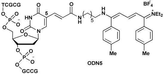 Streptocyanine dye installed on 5-position of thymidine (ODN5).