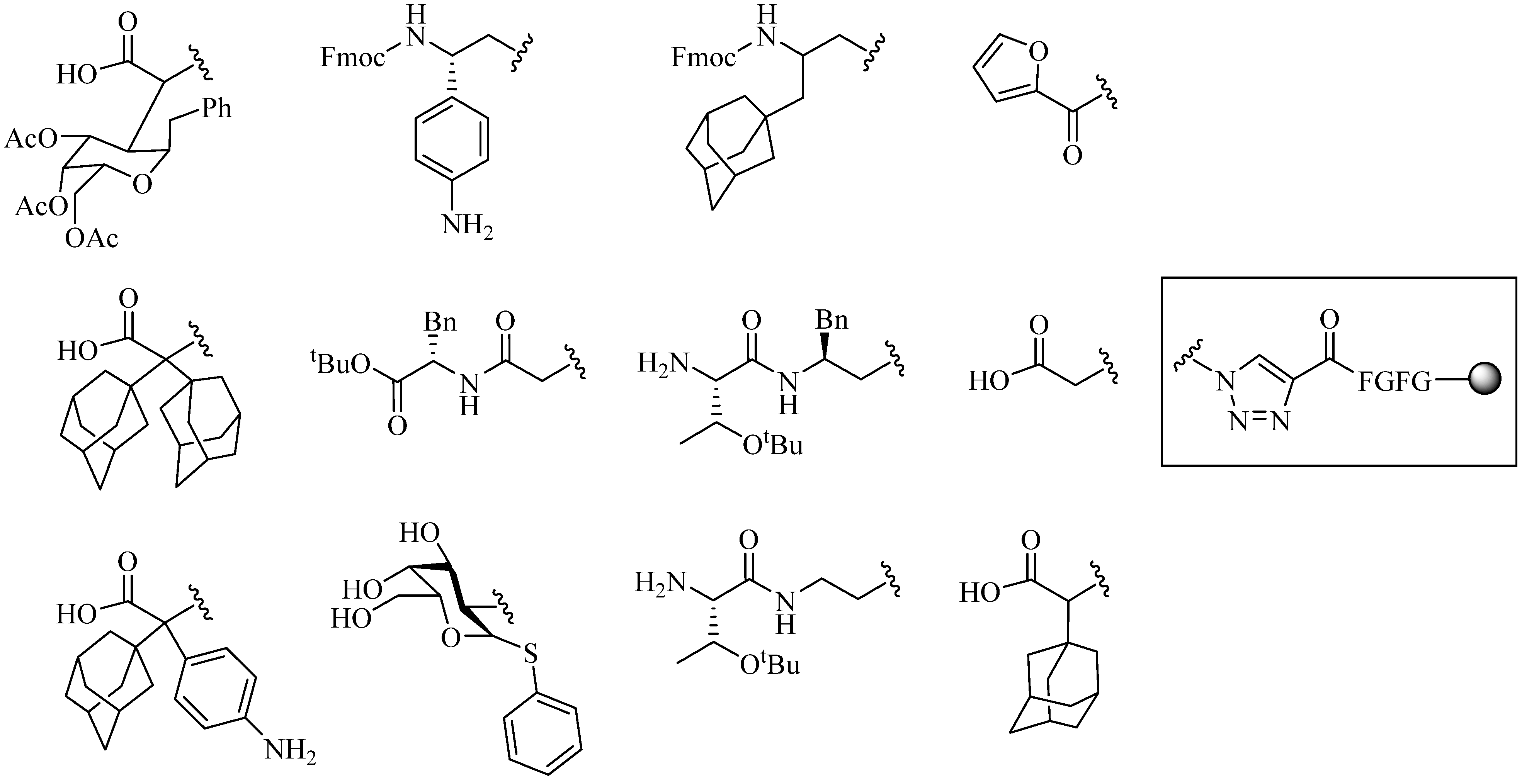 - Jang, H.J.; Fafarman, A.; Holub, J.M.; Kirshenbaum, K. Click to fit: Versatile polyvalent display on a peptidomimetic scaffold. Org. Lett. 2005, 7, 1951–1954. [Google Scholar] [CrossRef]