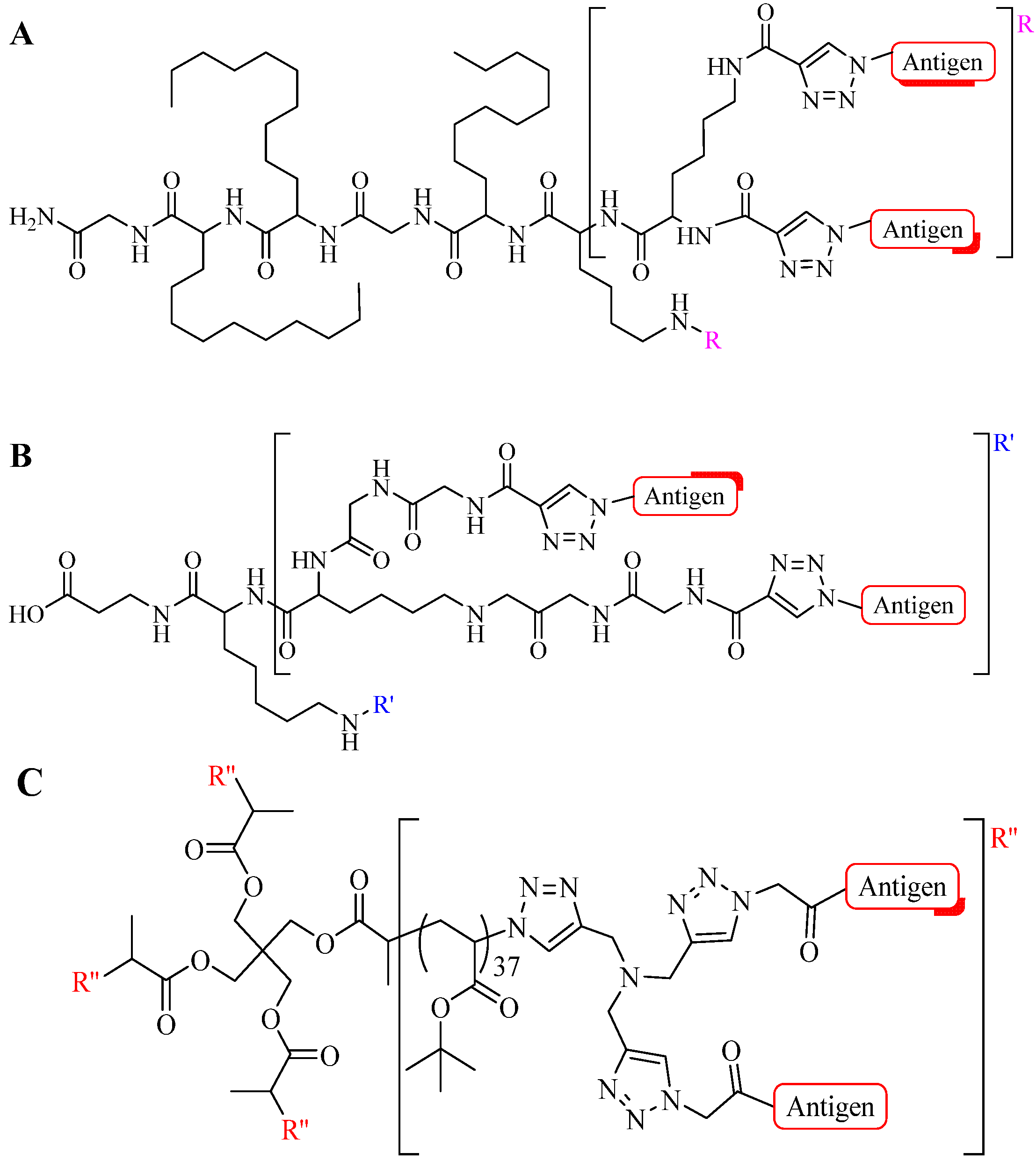 - Liu, T.Y.; Hussein, W.M.; Jia, Z.; Ziora, Z.M.; McMillan, N.A.; Monteiro, M.J.; Toth, I.; Skwarczynski, M. Self-adjuvanting polymer-peptide conjugates as therapeutic vaccine candidates against cervical cancer. Biomacromolecules 2013, 14, 2798–2806. [Google Scholar] [CrossRef]