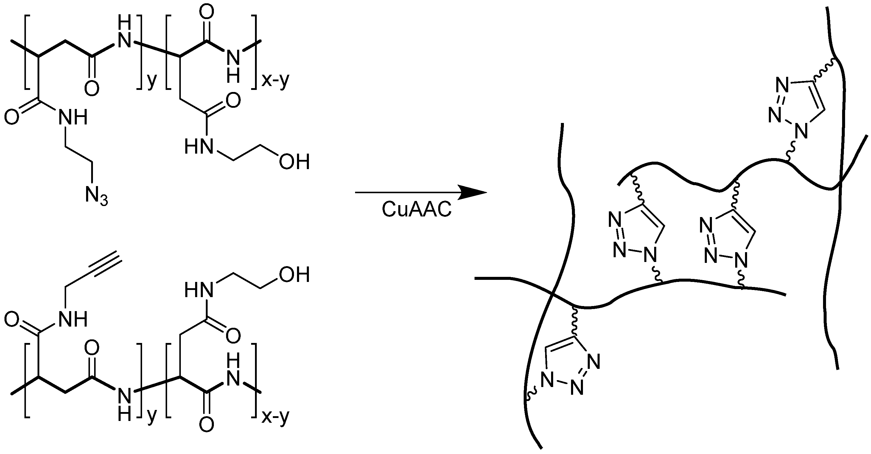 - Huynh, N.T.; Jeon, Y.S.; Zrinyi, M.; Kim, J.H. Preparation of click’ hydrogels from polyaspartamide derivatives. Polym. Int. 2013, 62, 266–272. [Google Scholar] [CrossRef]