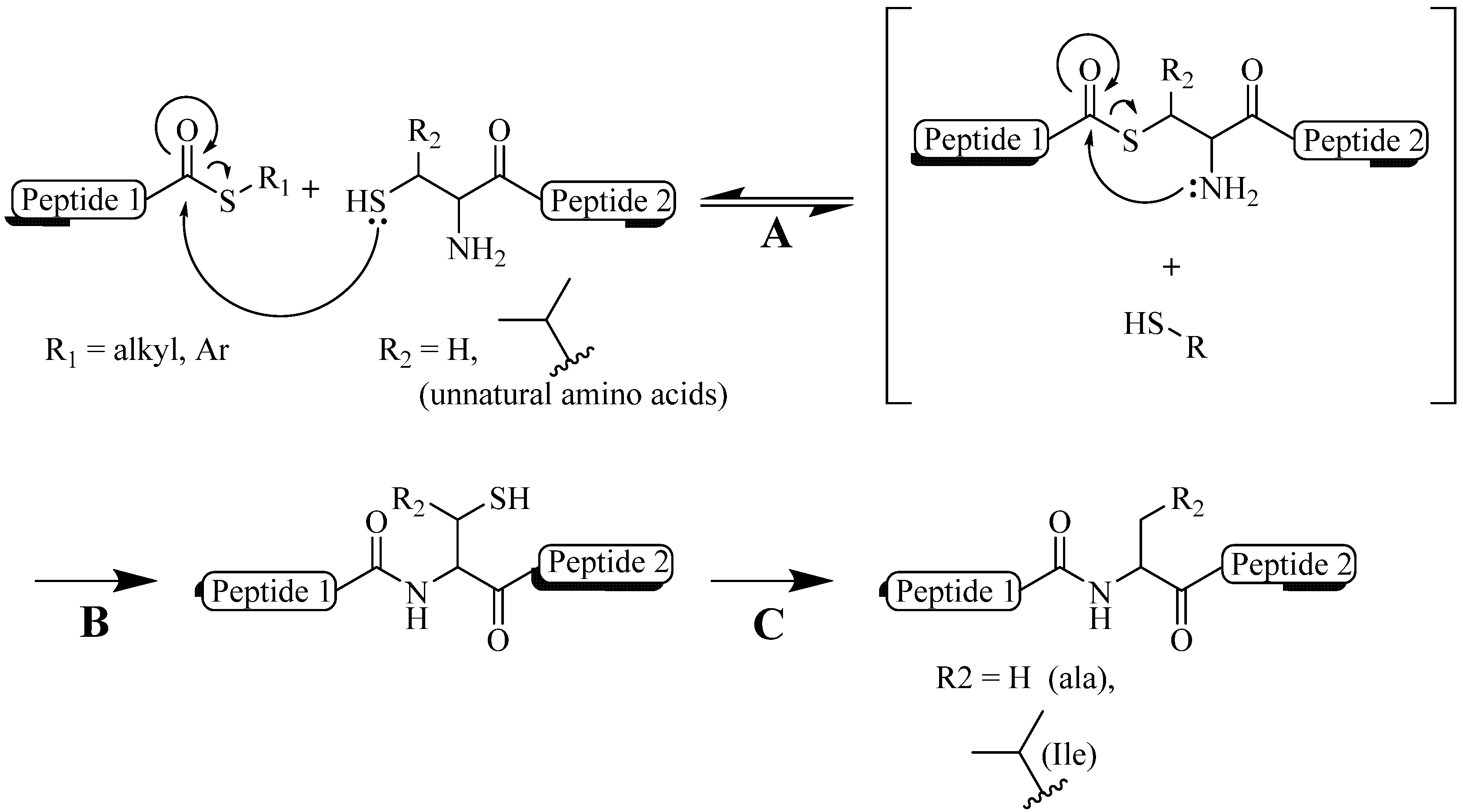 - Raibaut, L.; Ollivier, N.; Melnyk, O. Sequential native peptide ligation strategies for total chemical protein synthesis. Chem. Soc. Rev. 2012, 41, 7001–7015. [Google Scholar] [CrossRef]