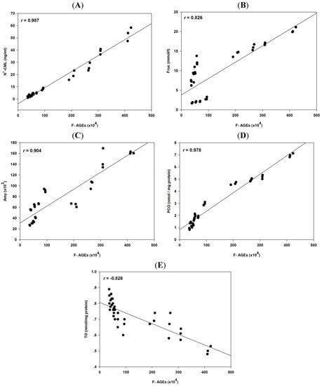 2.4. Correlation Coefficients between Glycation and Protein Oxidation