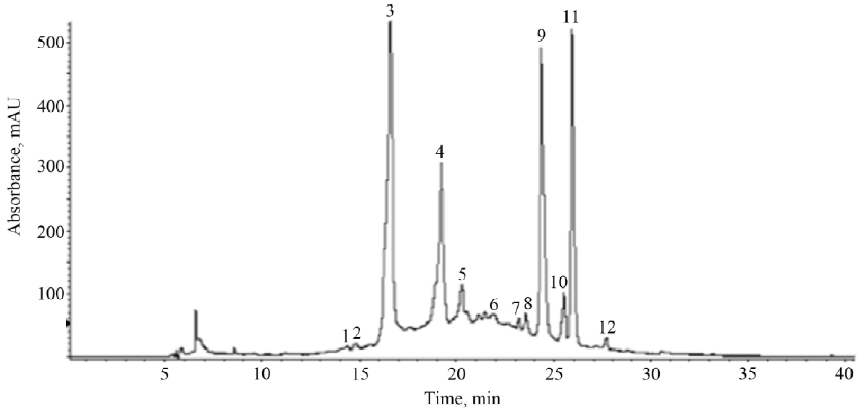 3.6. HPLC/DAD/ESI-MS Analysis
