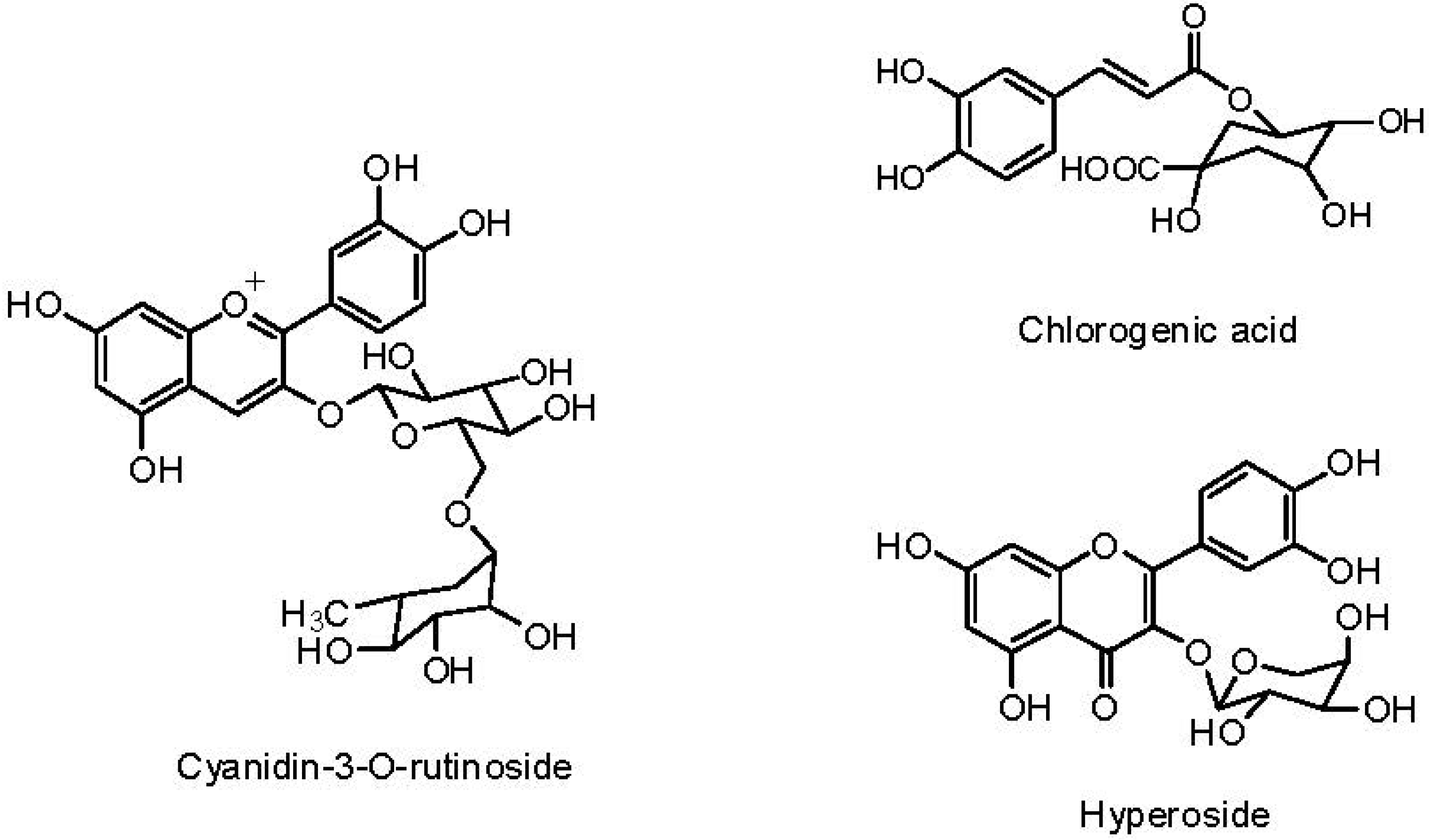 In addition, different phenolic compounds such as chlorogenic acid, anthocyanins, proanthocyanidins, and other flavonoids have been reported to have antihypertensive properties [35]. Therefore, the antihypertensive effect induced by the aqueous black cherry fruit extract could be a synergistic effect of chlorogenic acid, cyanidin-3-O-rutinoside, proanthocyanidins, and quercetine glycosides identified in this extract.