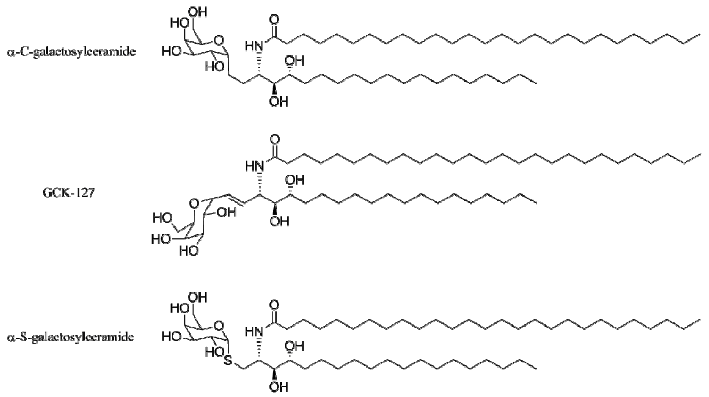 - Li, X.M.; Chen, G.W.; Garcia-Navarro, R.; Franck, R.W.; Tsuji, M. Identification of C-glycoside analogues that display a potent biological activity against murine and human invariant natural killer T cells. Immunology 2009, 127, 216–225. [Google Scholar] [CrossRef]