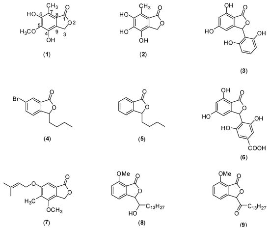 Structures of isobenzofuran-1(3H)-ones 1–9.