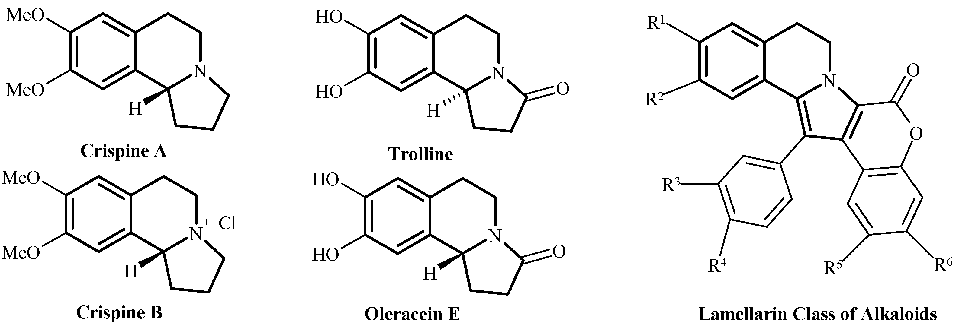 Natural alkaloids with pyrrolo[1,2-a]isoquinoline core.